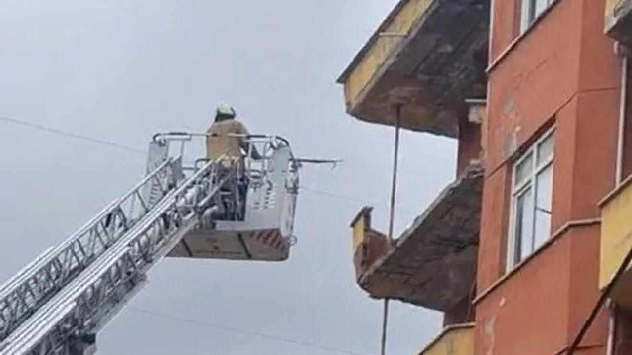 İstanbul'da korkutan anlar: Binanın balkonu çöktü!