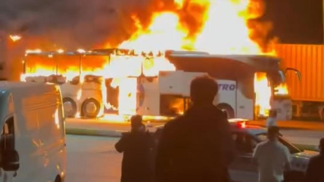 Yolcu otobüsü alev alev yandı