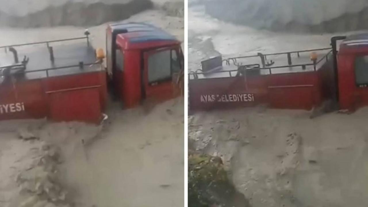 Ankara'da itfaiye aracı sele kapıldı
