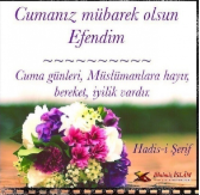 -Mübarek Cuma günü yapılacak ibadetlere, diğer günlerde yapılanların, en az iki katı verilmektedir. Buna karşılık ise ,Cuma günü yapılan günahlar da iki kat yazılmaktadır. Cuma gününü en hayırlısı ile geçirmek dileğiyle cumanız mübarek olsun.Bizi dostlarına dost, düşmanlarına düşman olanlardan ve sabreden ve şükredenlerden eyle! İşinde sebat eden, nimetine şükreden, ibadetini güzel yapan, doğru konuşanlardan eyle Ya Rabbim. Amin. Hayırlı Cumalar dilerim.Güzellikler içinizi aydınlatsın, yüzünüzden ve yüreğinizden tebessüm eksilmesin. Rabbim, sevdiği kullarından eylesin sizleri ve tabi ki bizleri. Hayırlı cumalar dilerim.