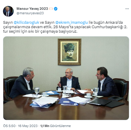 Cumhur ve Millet İttifakı 28 Mayıs'ta gerçekleştirilecek 2. tur seçimi için hazırlıklarına başladı. Bu kapsamda İstanbul Büyükşehir Belediye Başkanı Ekrem İmamoğlu ve Ankara Büyükşehir Belediye Başkanı Mansur Yavaş, resmi Twitter hesapları üzerinden eş zamanlı bir paylaşımda bulundu.