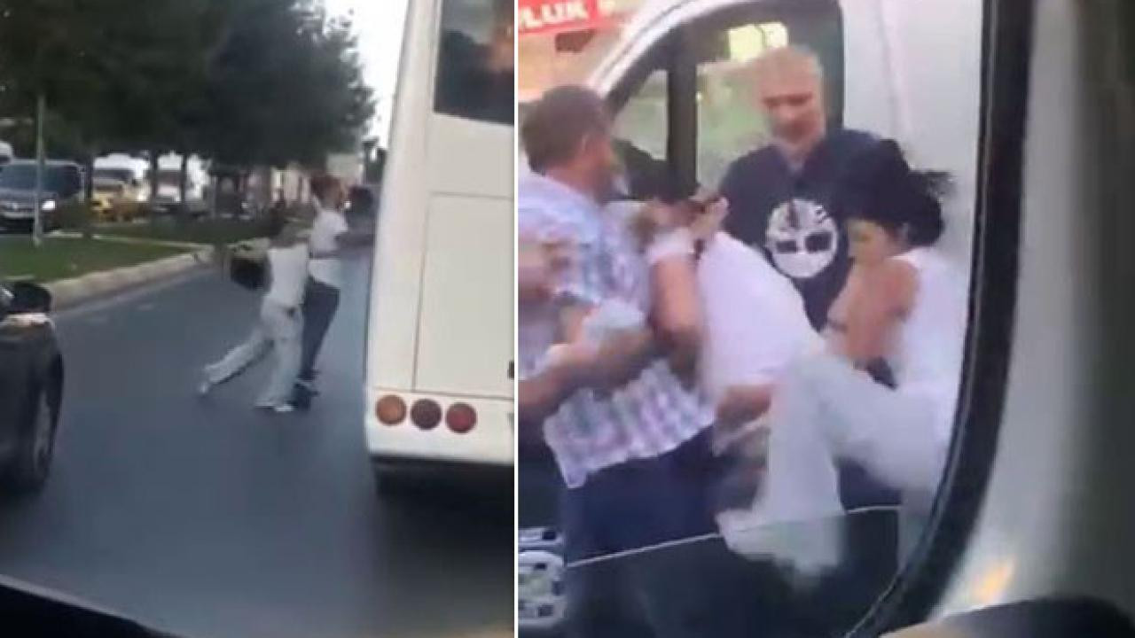 Esenyurt'ta servis aracının yolda sıkıştırdığı motosikletli çiftten kaskla saldırı