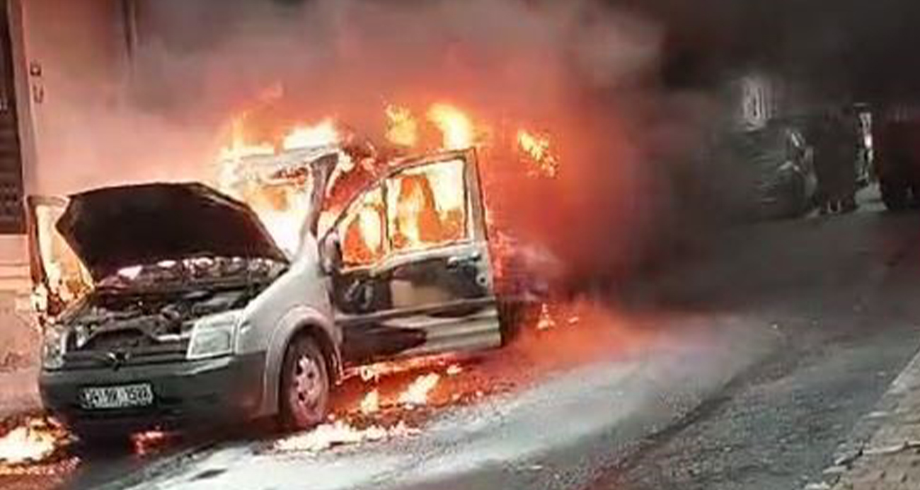 Esenlerde park halindeki otomobil alev alev yandı Yangın arkadaki minibüse de sıçradı
