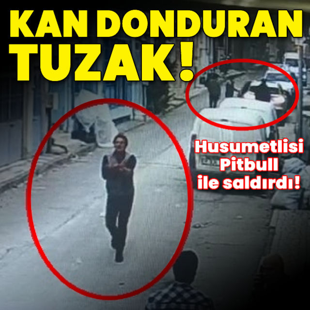 Husumetlisi Pitbull köpeğini üzerine saldırttı o anlar kamerada