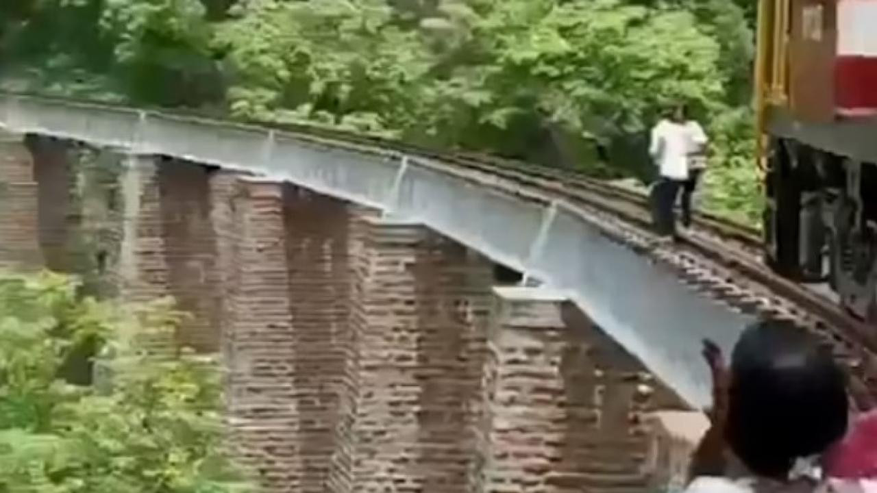 Hindistan'da Demiryolu Köprüsünde Fotoğraf Çekerken Tehlikeli Anlar