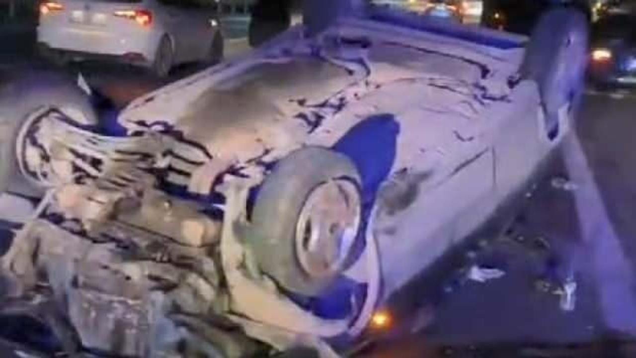 Mersin'de otomobilin çarptığı polis aracı ters döndü
