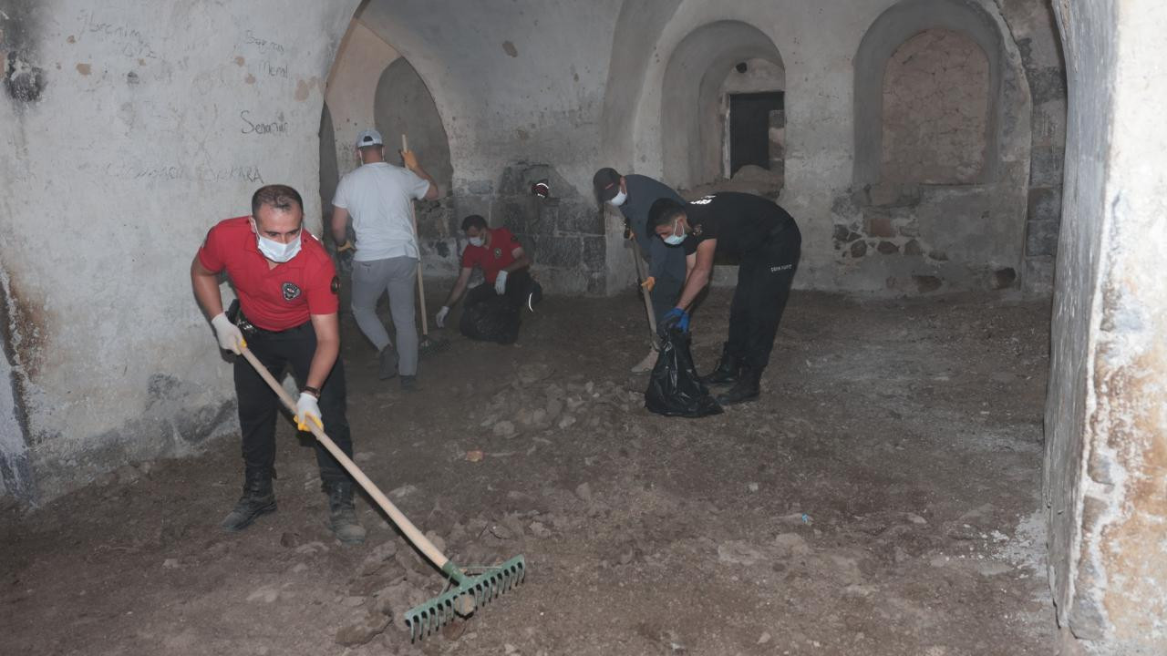 Erzurum'da 140 polis, tarihi Büyük Höyük Tabyası'nda 'mıntıka' temizliği yaptı