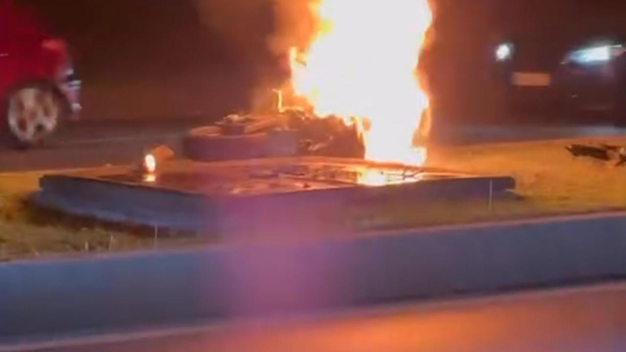 Kartal’da, otomobil ile çarpışan motosiklet alev aldı