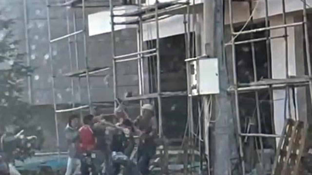 El arabasında anlaşmazlık yaşayan inşaat işçileri böyle kavga etti