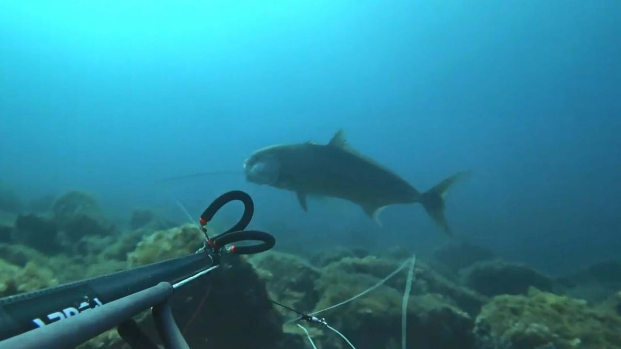 Zıpkınla 1,8 metre boyunda akya balığı avladı