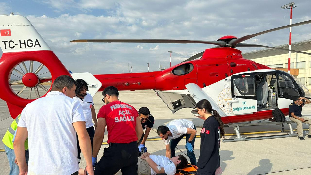 Hayvanın tepmesi sonucu ayağı kırılan şahıs için helikopter havalandı