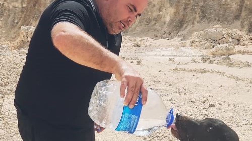 Sokak köpeklerini elleriyle içirdiği suyla böyle serinletti