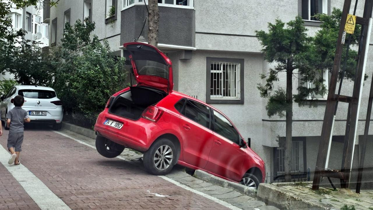 Avcılar'da manevra yaparken merdivenlerde asılı kaldı