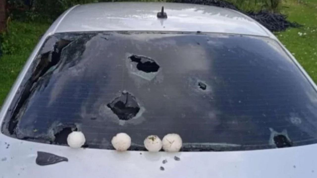 Kar topu büyüklüğünde dolu yağdı! Araçlar hasar gördü