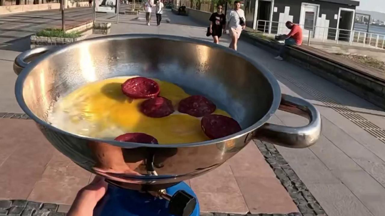 Bisiklet sürerken sucuklu yumurta yaptı! ‘Çıtayı daha da yükselteceğim’