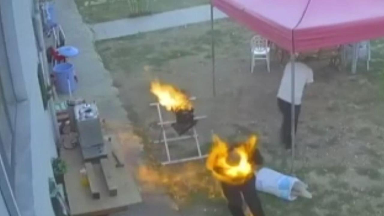 Mangal jeli nedeniyle vücudunun yüzde 38'i yanan hasta su dolu varile atlayarak kurtulmuş