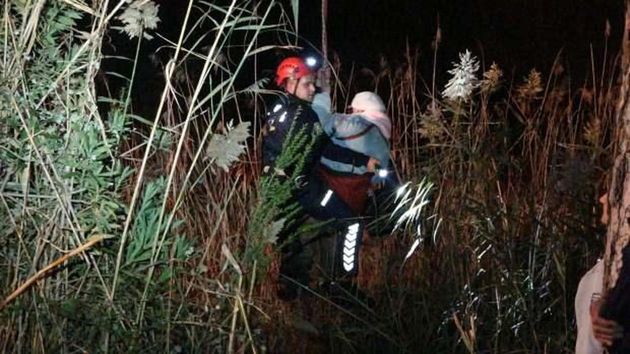 Bataklıkta 4 saat mahsur kalan kadın vinçle kurtarıldı