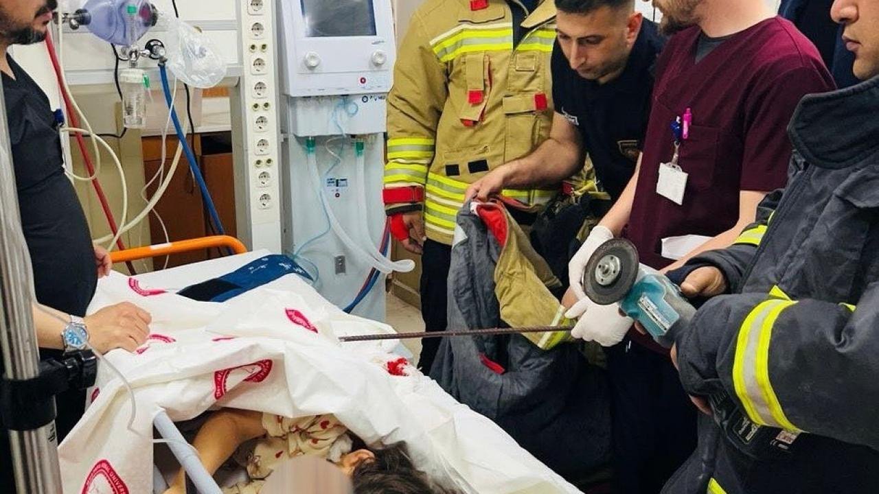 Kız çocuğunun beline inşaat demiri saplandı