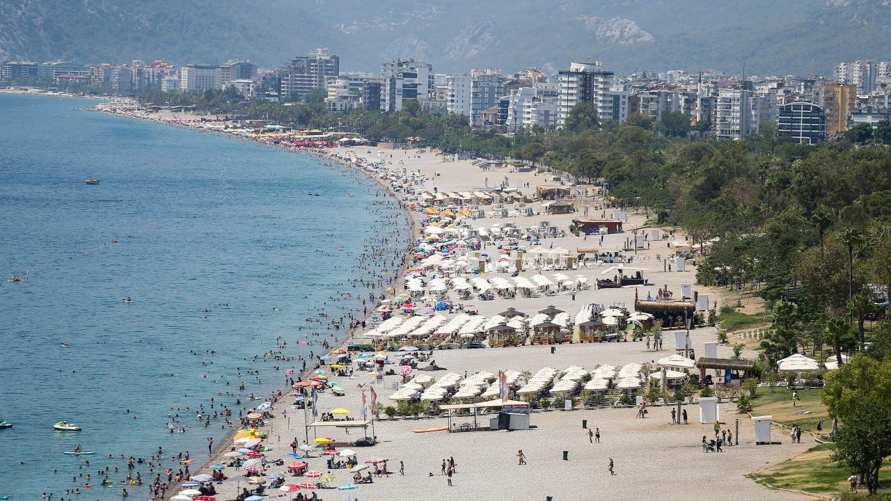 Konyaaltı Sahilinde Sıcaktan Bunalanlar Serinlemeyi Tercih Ediyor