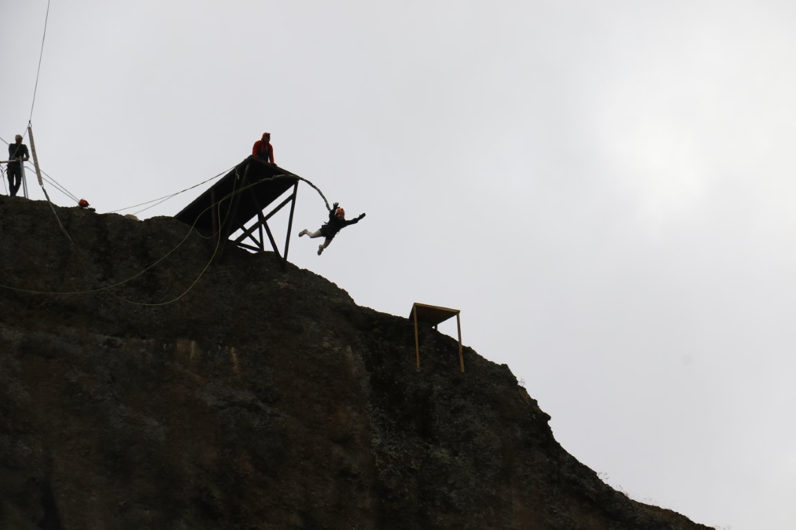 Adrenalin tutkunları 70 metreden kendilerini boşluğa bıraktı