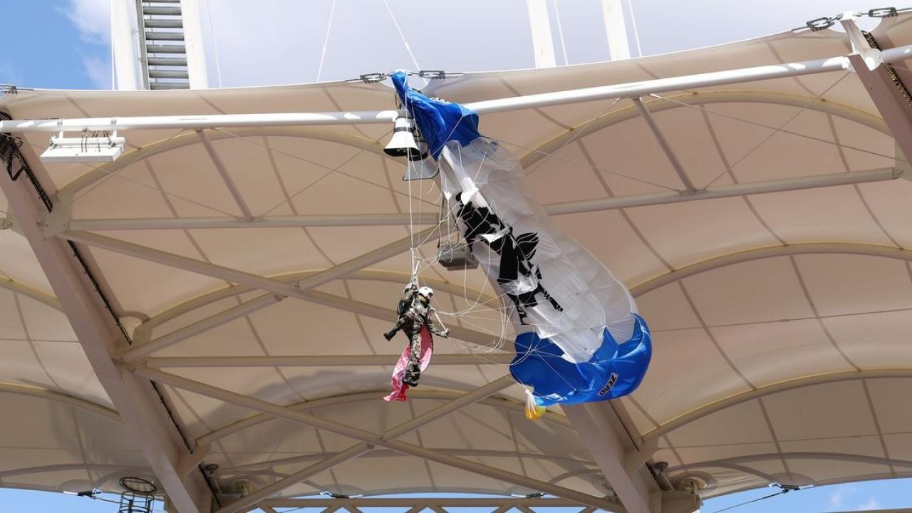 Dakikalarca kurtarılmayı bekledi: Paraşütçü çatıya asılı kaldı
