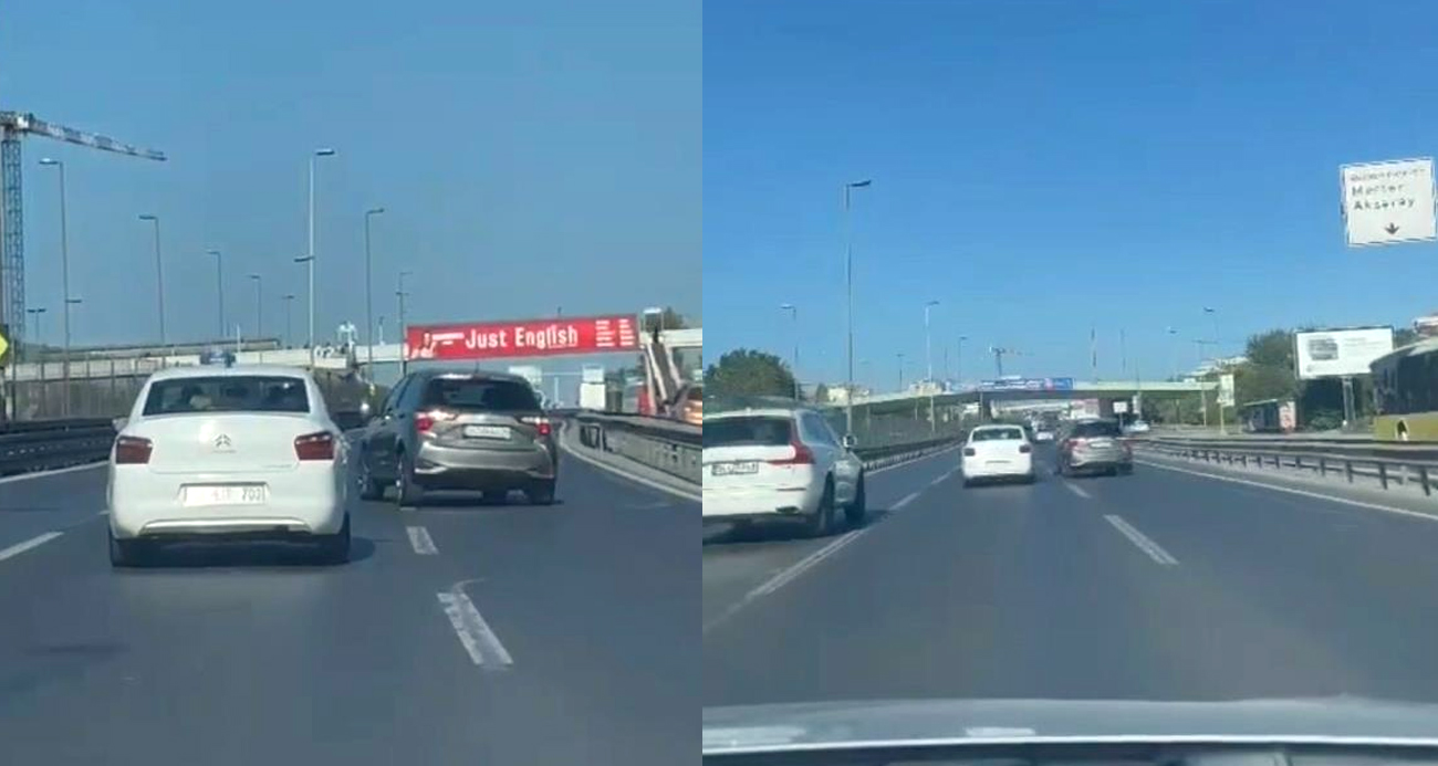 E5 Karayolunda tehlikeli inatlaşma kamerada Boş yolu paylaşamadılar