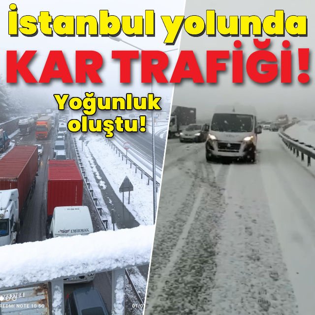 Bursa-İstanbul karayolunda kar yağışı nedeniyle yoğunluk oluştu