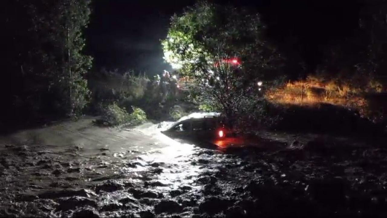 Tortum İlçesinde Heyelan Sonucu Otomobil Dereye Sürüklendi!