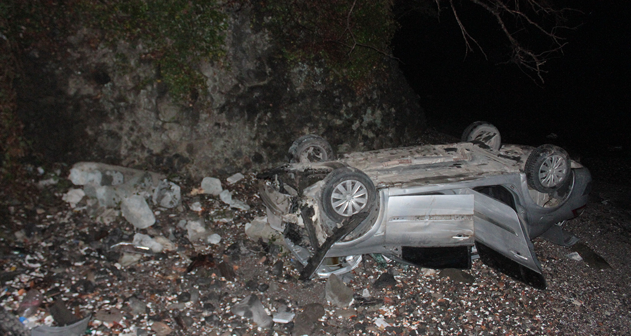 Otomobil 200 metre yükseklikten vadiye uçtu